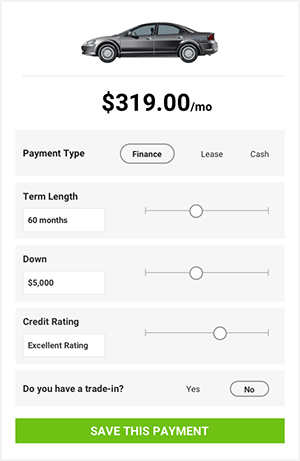 As you browse our selection you'll see each vehicle has an "Explore Payment Options" button. Clicking that puts you in full control to customize the monthly payment based on your preferred settings, such as finance or lease, term length, down payment, and whether or not you want to trade-in your current vehicle. All the math happens automatically as you make adjustments so you can determine what monthly payment works best for your budget.